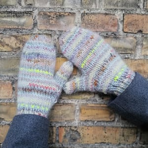 Varme tykke luffer og tilhørende hue. Strik dine helt egne unikke luffer og hue i rester. Du vælger selv farver og forløb. Skal resterne strikkes ind som "strejf" som her, smalle eller brede striber, eller colorgrading som vist på de 2 sidste billeder.